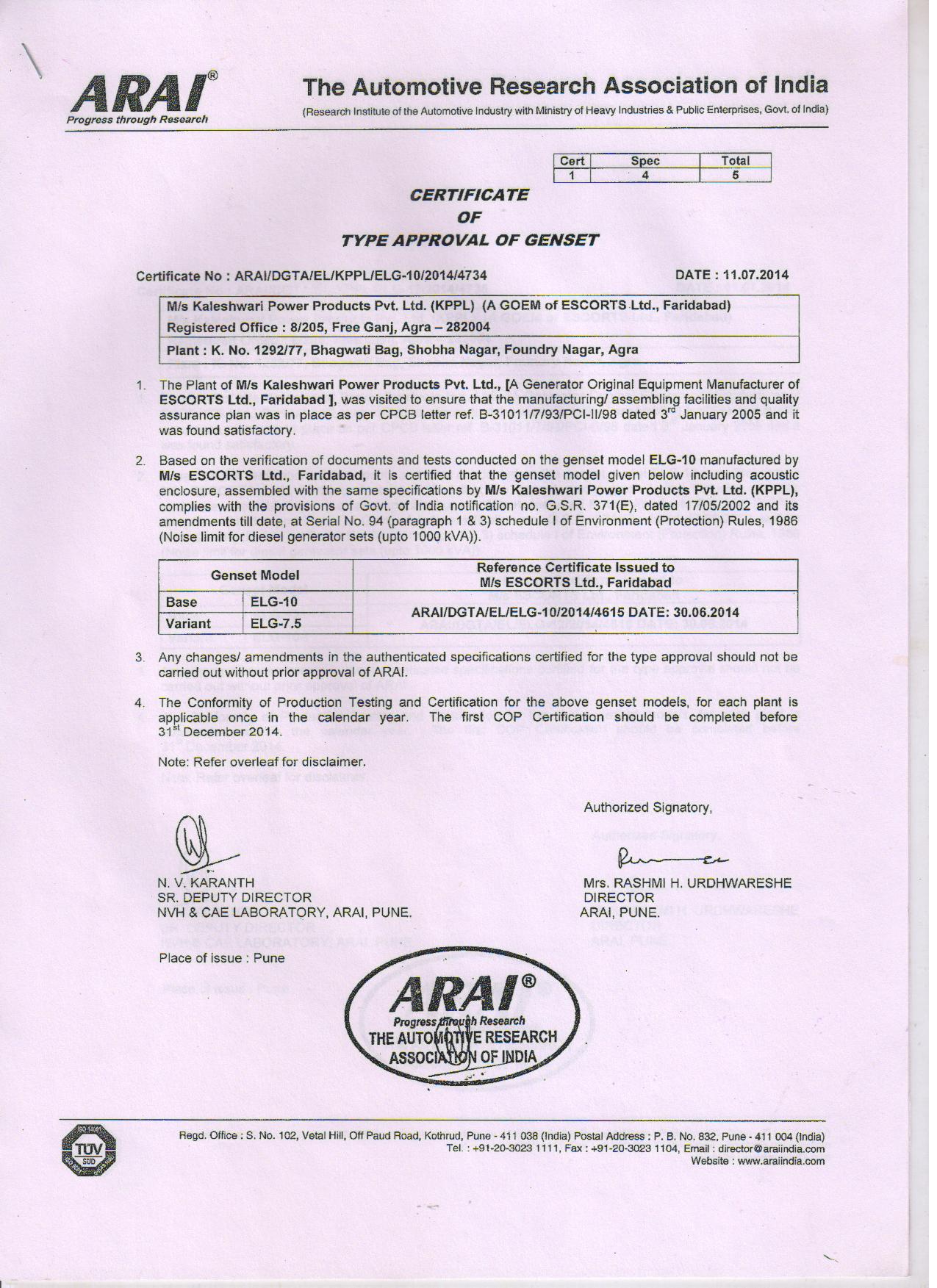 ARAI Certification